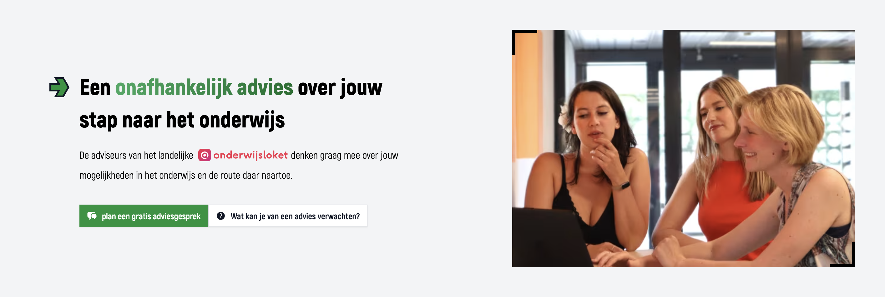 De adviseurs van [het landelijke Onderwijsloket](https://onderwijsloket.com) denken graag mee over jouw mogelijkheden in het onderwijs en de route daar naartoe.